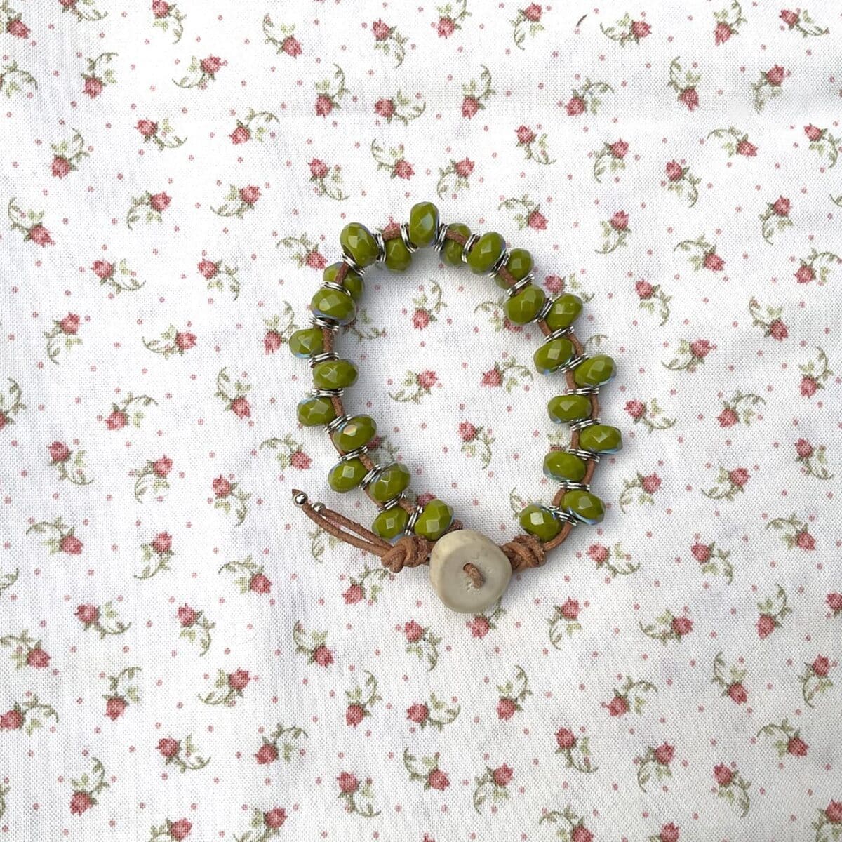 Grasshopper Green and Leather Bracelet