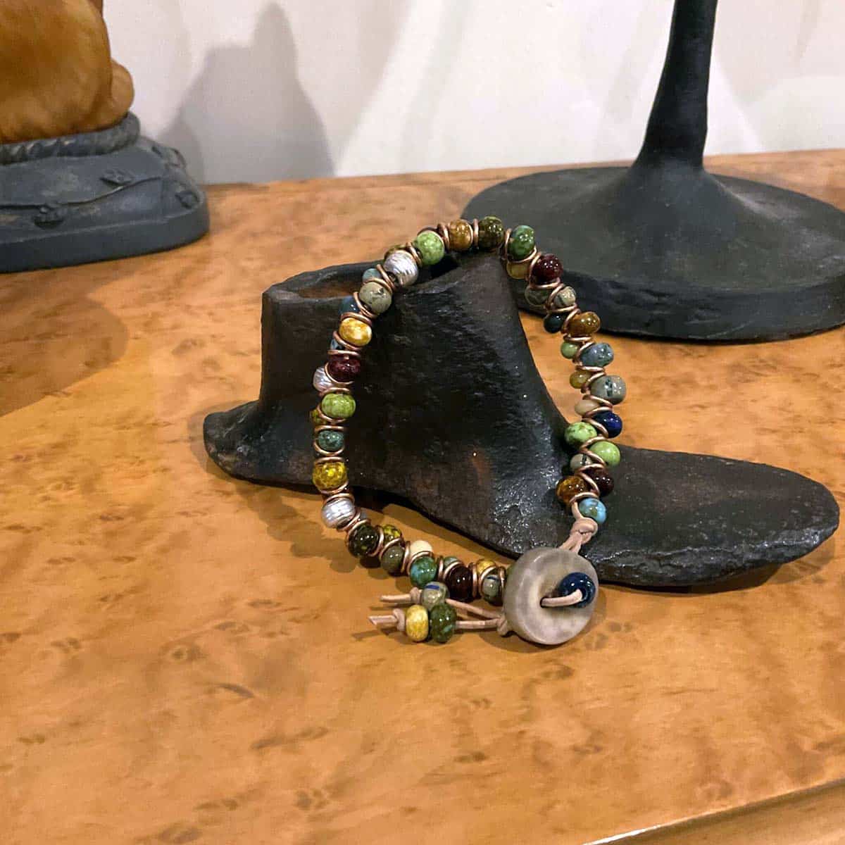 • blue, gold, green, red, rust Picasso beads