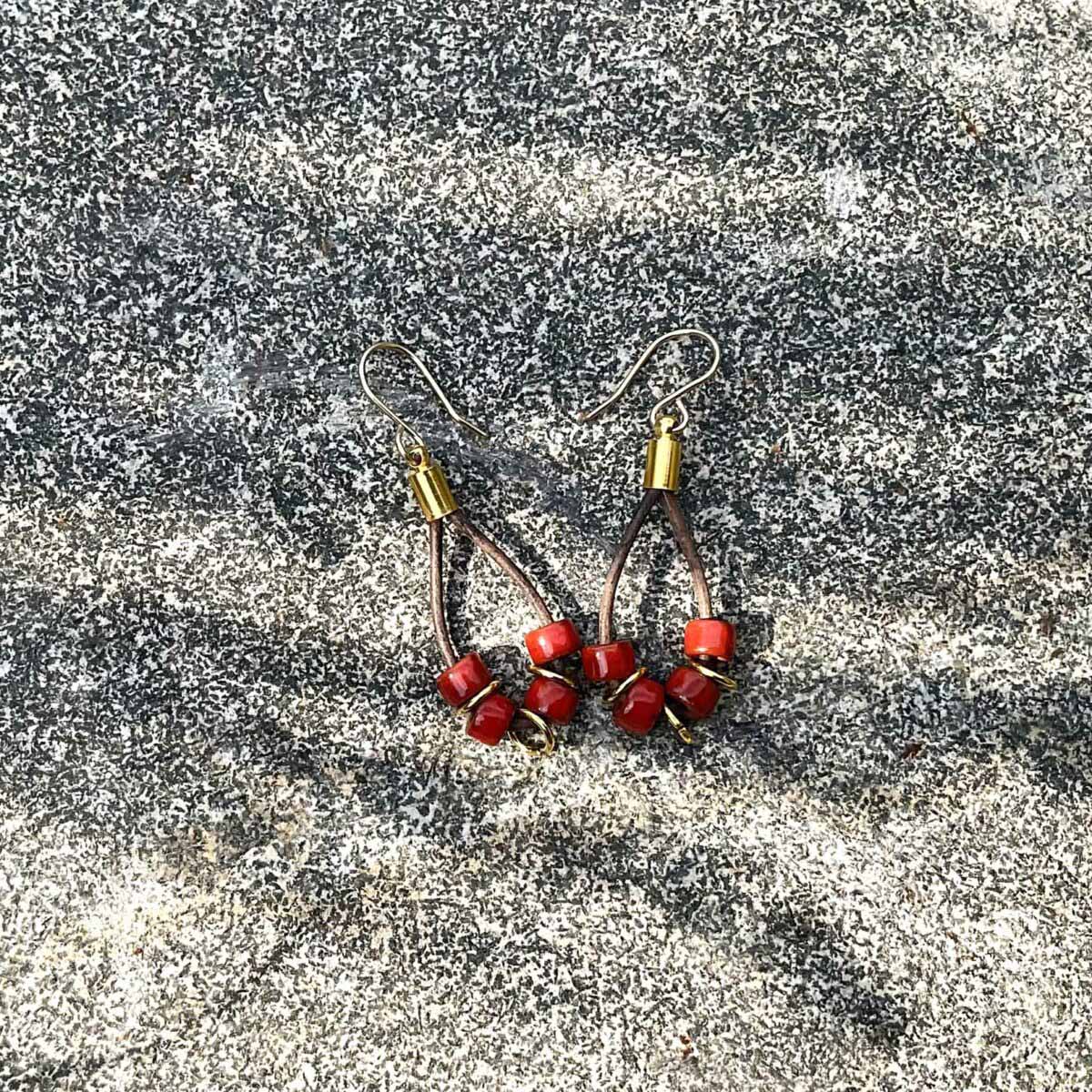 Tera Cotta Mykonos beads Leather Lace Earrings